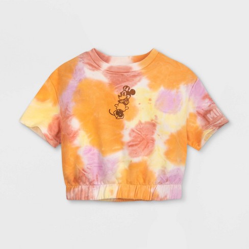 Women S Disney Mickey Mouse Tie Dye Fleece Short Sleeve T Shirt Orange Disney Store Target
