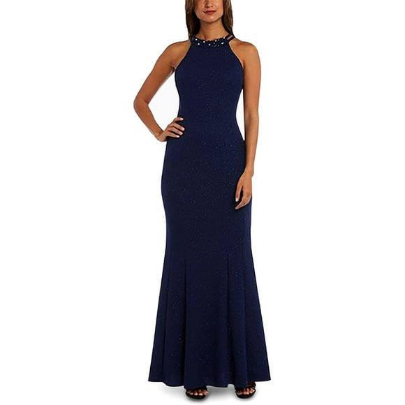 Nw Nightway Womens Metallic Maxi Evening Dress
